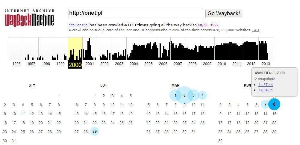 Aby znaleźć odpowiedź na pytanie ile warta jest domena, należy przeanalizować jej wiek oraz historię. Zazwyczaj im starsza domena, tym lepiej. Dlaczego zazwyczaj? Dlatego, że to też zależy od tego, jak na przestrzeni lat zmieniała się treść strony pod daną domeną. Jeżeli znajdowały się tam treści kompromitujące, SWL-e (system wymiany linków), Google nałożył na nią kary, to wiek obniży jej wartość. Jaka zawartość i treść znajdowała się w danym momencie pod analizowaną domeną sprawdzisz dzięki Wayback Machine.