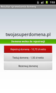 Z przyjemnością informujemy, iż jest już dostępna do pobrania aplikacja mobilna Domeny.tv, przygotowana specjalnie pod urządzenia mobilne z systemem Android. Można już ją pobrać bezpłatnie z serwisu Google Play. Teraz jeśli jesteś poza domem lub pracą, możesz w każdej chwili mieć wygodny dostęp do wszystkich swoich domen. Aplikacja pozwala na wykonywanie wszystkich najbardziej potrzebnych operacji na domenach - w tym zarządzanie nimi oraz odnawianie. Wygodnie sprawdzić można też dane abonenta domeny, dostępność domen, jak również zlecić rejestrację domen będących w ofercie serwisu Domeny.tv.