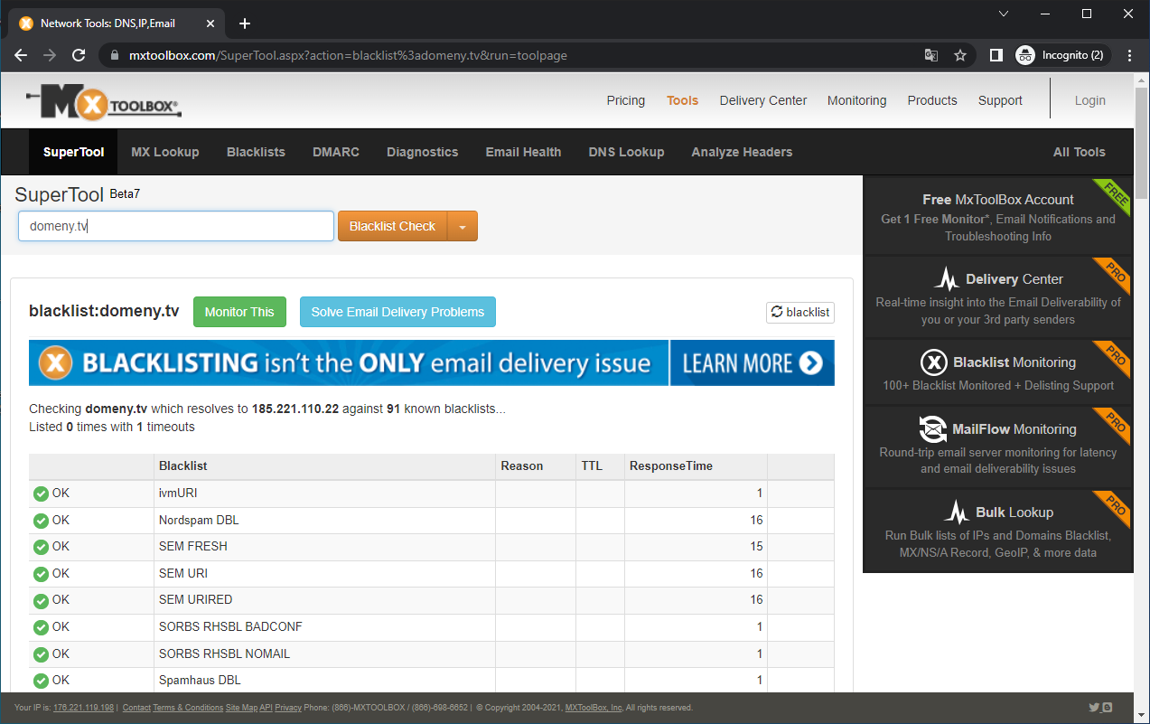 Narzędzie które przedstawię, w następnej kolejności, służy do kompleksowej oceny reputacji adresu IP serwera pocztowego i oceny dostarczania wiadomości email. Może być szczególnie ważne przy wysyłaniu wiadomości do wielu adresatów np. newslettera.
