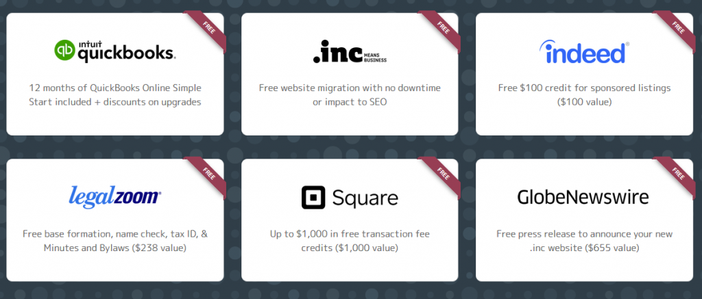 Biznesowe podejście rejestru domeny .inc - spółki Intercap Registry, zaowocowało pozyskaniem partnerów, którzy do nazwy w domenie oferują swoje usługi za darmo lub ze znaczną zniżką. Wśród partnerów są m.in takie marki jak: Google Ads, indeed, WeWork, Square, Intuit, Delta Airlines, Vistaprint.