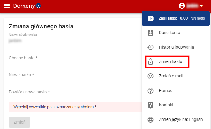Hasło w Domeny.tv najprościej zaktualizujesz na dwa sposoby: