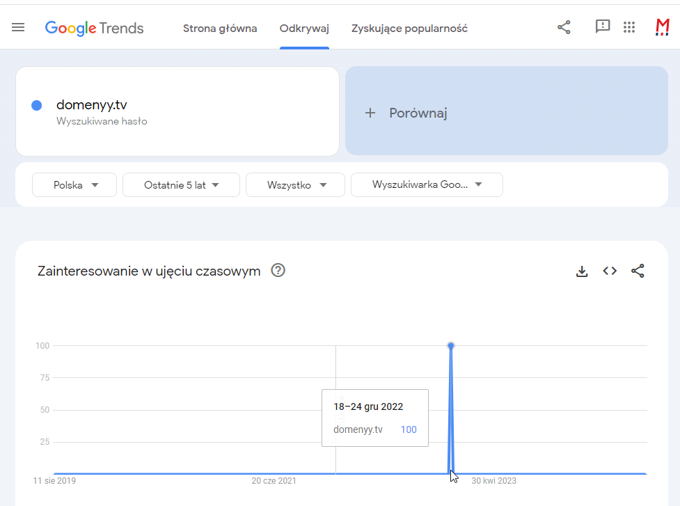 Google Trends pozwala zobaczyć popularność wyszukiwań na przestrzeni czasu. Możesz wpisać różne warianty literówek swojej domeny i sprawdzić, czy istnieją zapytania związane z tymi literówkami. Aby użyć: