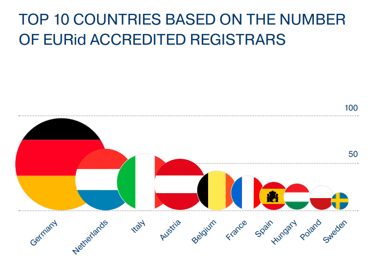 Dodatkowo polska znalazła się na 9 miejscu w rankingu top 10 krajów z największą liczbą akredytowanych rejestratorów. Rok temu nasze państwo nie było w nim uwzględnione. Jako Domeny.tv wliczamy się do rankingu i posiadamy podpisaną bezpośrednią umowę z EURidem.