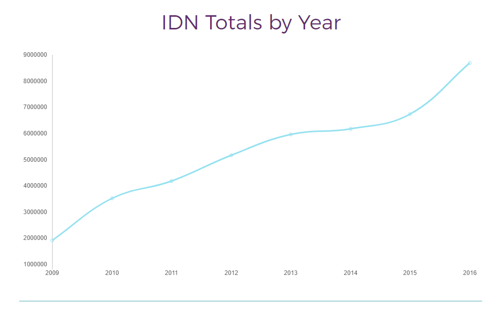 Każdego roku zespół badawczy IDN World Report publikuje kluczowe fakty i dane liczbowe dotyczące wykorzystania IDN. Oto najważniejsze z nich.