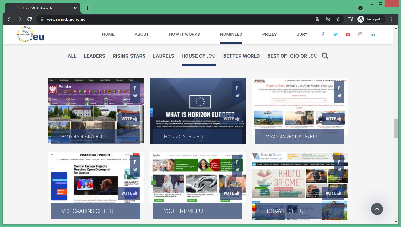 Celem konkursu jest wyróżnienie najlepszych stron internetowych, korzystających z rozszerzeń .eu oraz .ею (.eu zapisane cyrlicą) lub .ευ (.eu zapisane alfabetem greckim).