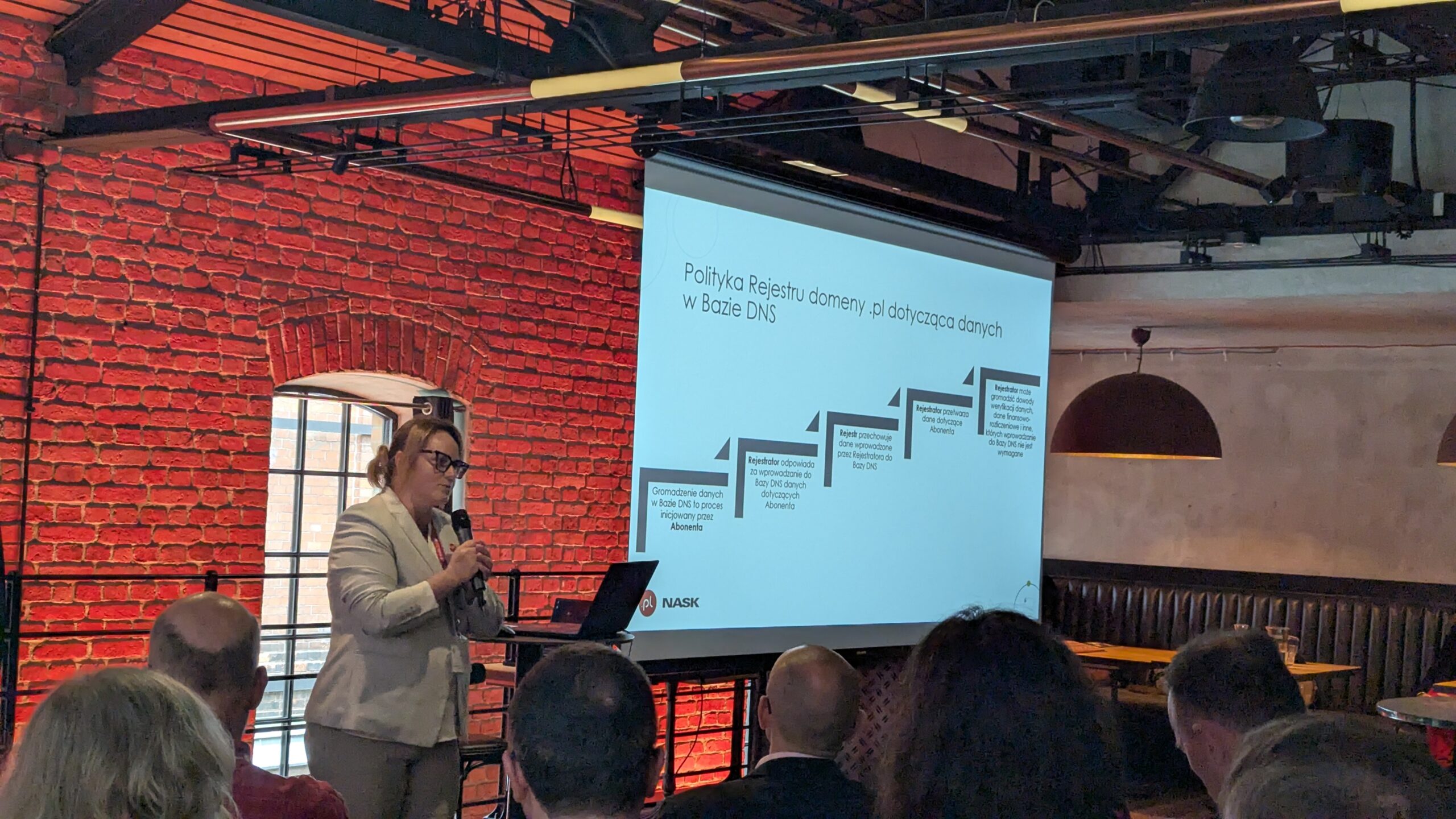 Monika Nowikowska, kierownika Działu Centrum Kompetencji DNS przedstawiła zagadnienia związane z odpowiedzialnością za dane w Rejestrze domeny .pl oraz mechanizmy przeciwdziałania nadużyciom. Wyjaśniła, jakie obowiązki spoczywają na abonencie, rejestratorze i rejestrze w procesie gromadzenia i przetwarzania danych, podkreślając konieczność ich kompletności i aktualności, szczególnie w kontekście nadchodzących wymogów dyrektywy NIS2.