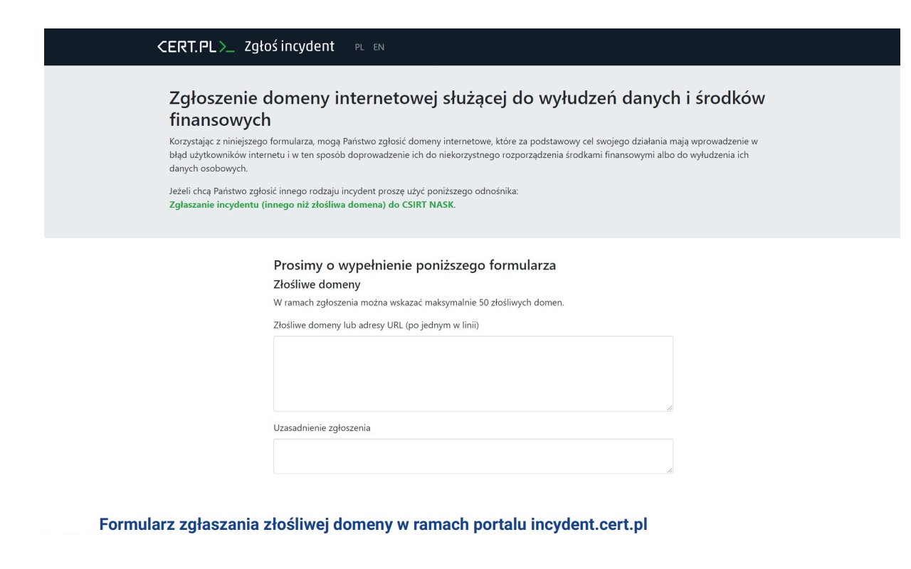 Podejrzane domeny możesz zgłosić pod adresem: https://incydent.cert.pl/domena (Rysunek 10)