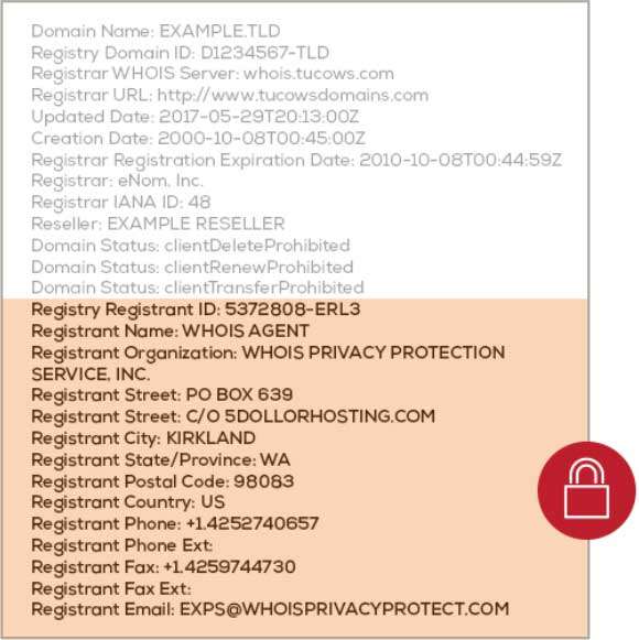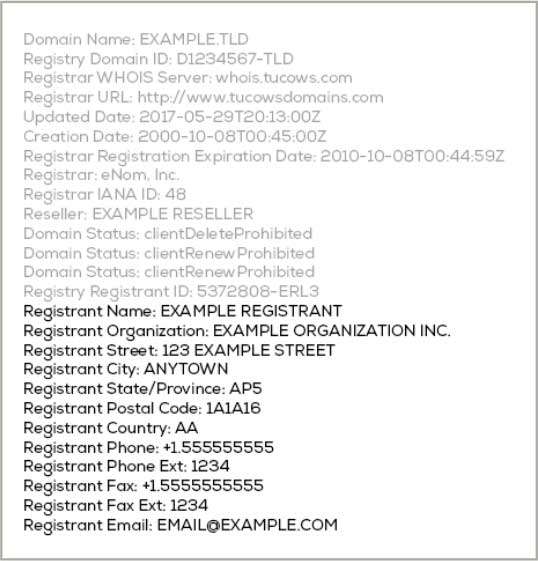 Na poziomie rejestru nie są przechowywane ani wyświetlane żadne dane osobowe, jedynie podstawowe dane techniczne związane z nazwą domeny. Są to np. dane serwerów nazw, data utworzenia, data wygaśnięcia. Aby poznać dane abonenta, trzeba zejść o poziom niżej - do głównego rejestratora. Wyciąg z bazy WHOIS często zawiera informacje z obydwu tych źródeł połączone.