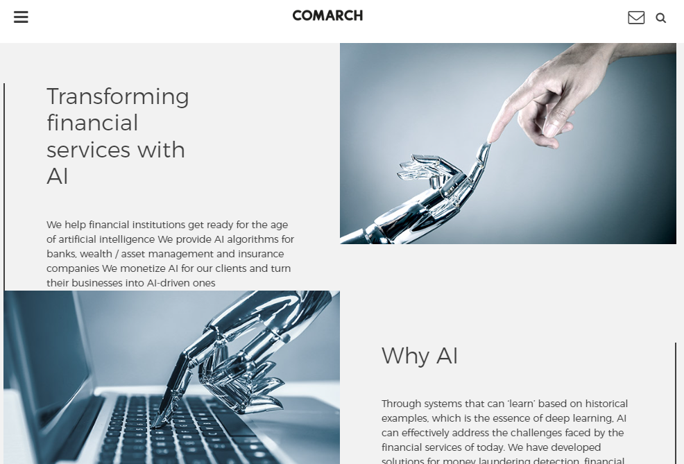 Comarch.ai - Comarch SA to jedna z największych polskich spółek informatycznych. Strona pomaga instytucjom finansowym przygotować się na erę sztucznej inteligencji i dostarcza algorytmy AI dla banków. Domena comarch.ai zarejestrowana jest w Domeny.tv.