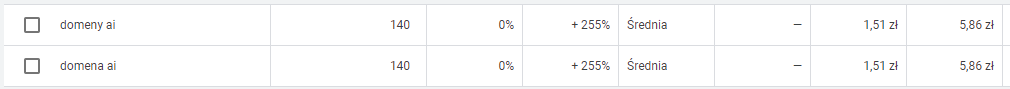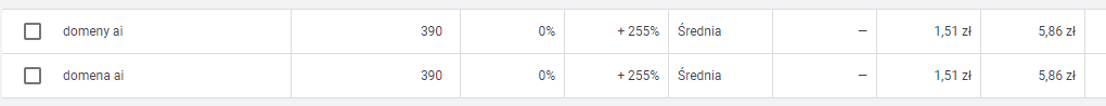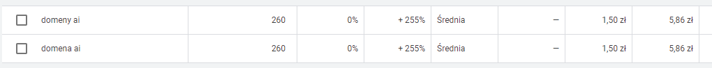 Na przykładzie ogólnodostępnego planera słów kluczowych od Google Ads postanowiliśmy przekonać się, czy i jak bardzo zwiększyła się wyszukiwalność tematyki AI w Google. Zweryfikowaliśmy to, cofając się co jeden miesiąc, począwszy od maja 2023 roku, do momentu uzyskania porównywalnego zakresu roku - do maja 2022 roku. Słowem kluczowym była fraza “Domena ai”.