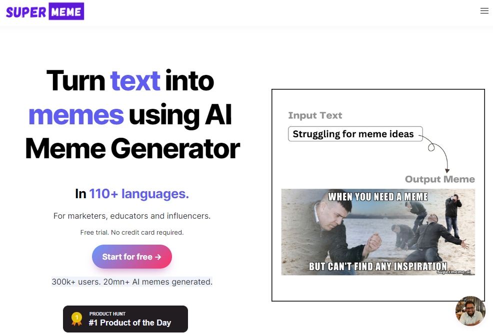 Supermeme.ai- to generator memów zmieniający tekst w memy za pomocą AI.