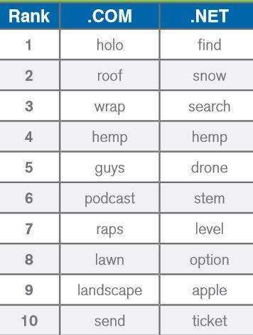 W raporcie znajdziemy również zestawienie najpopularniejszych słów kluczowych pierwszego kwartału, które sumuje wyniki miesięcznych podsumowań publikowanych na blogu Verisign. Uwzględnione słowa kluczowe odnotowały największe wzrosty pod względem liczby rejestracji. Dla rozszerzenia .com było to hasło „holo”, a dla rozszerzenia .net - „find”.