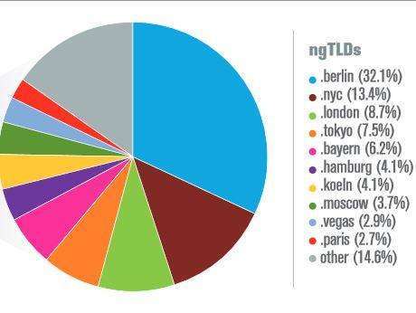 W klasyfikacji najpopularniejszych geodomen w czołówce znalazły się końcówki .berlin, .nyc oraz .london. Pierwszą dziesiątkę zamyka rozszerzenie .paris.